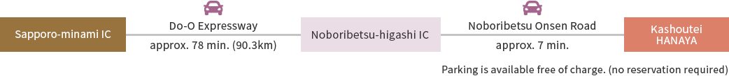 | JR Noboribetsu Sta. | → | Kashoutei Hanaya |
